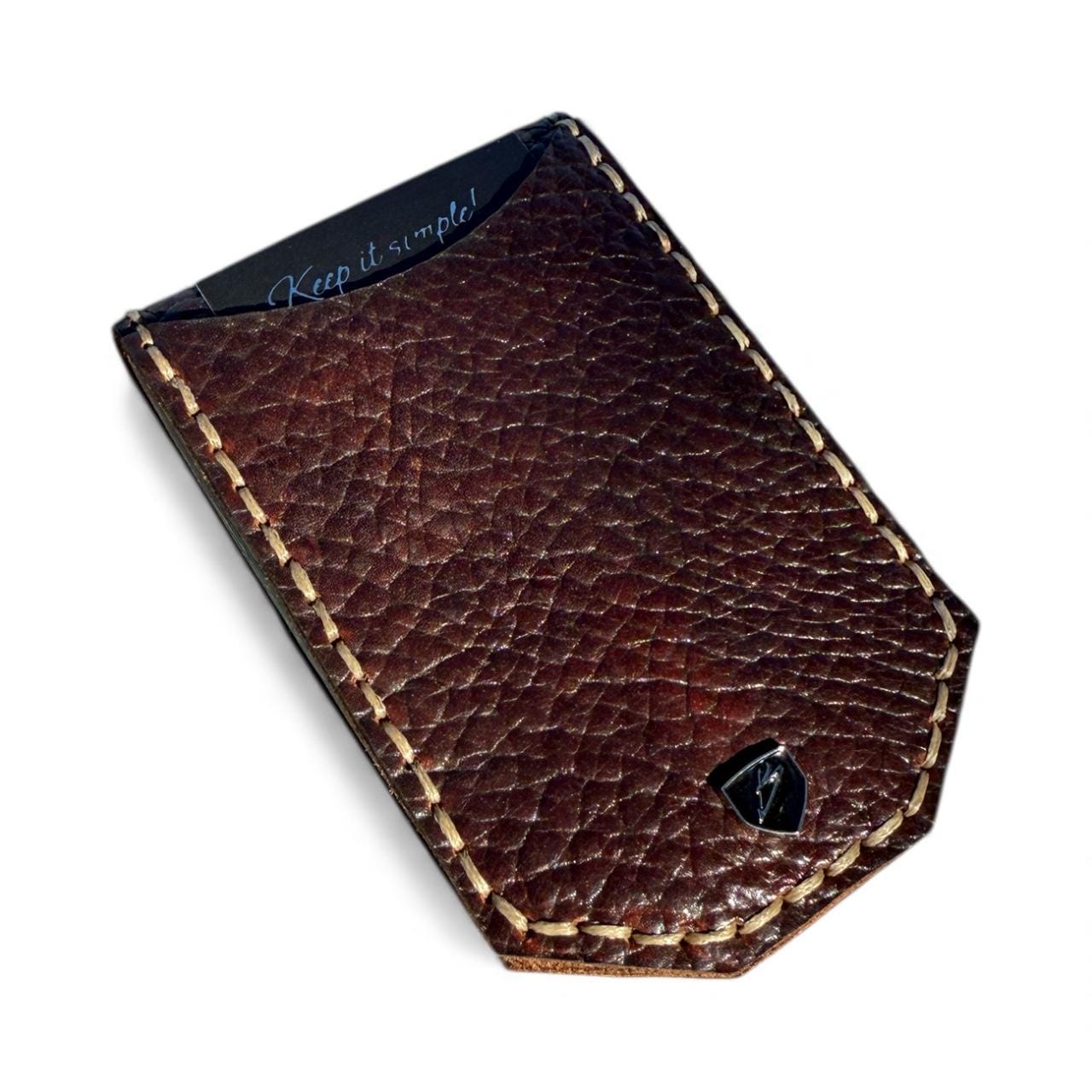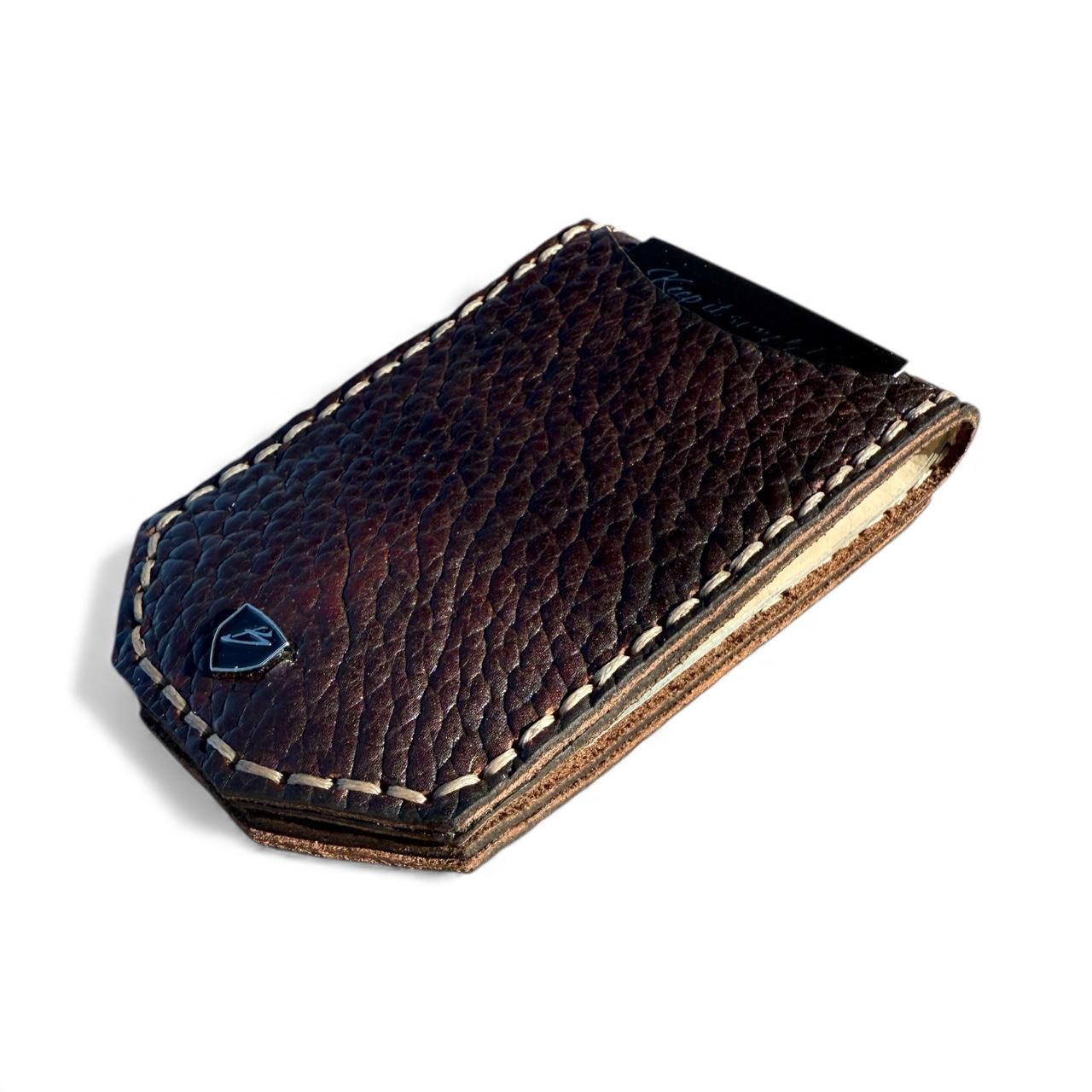 Dark Brown Pebble Bison Leather Magnetic Money Clip Wallet