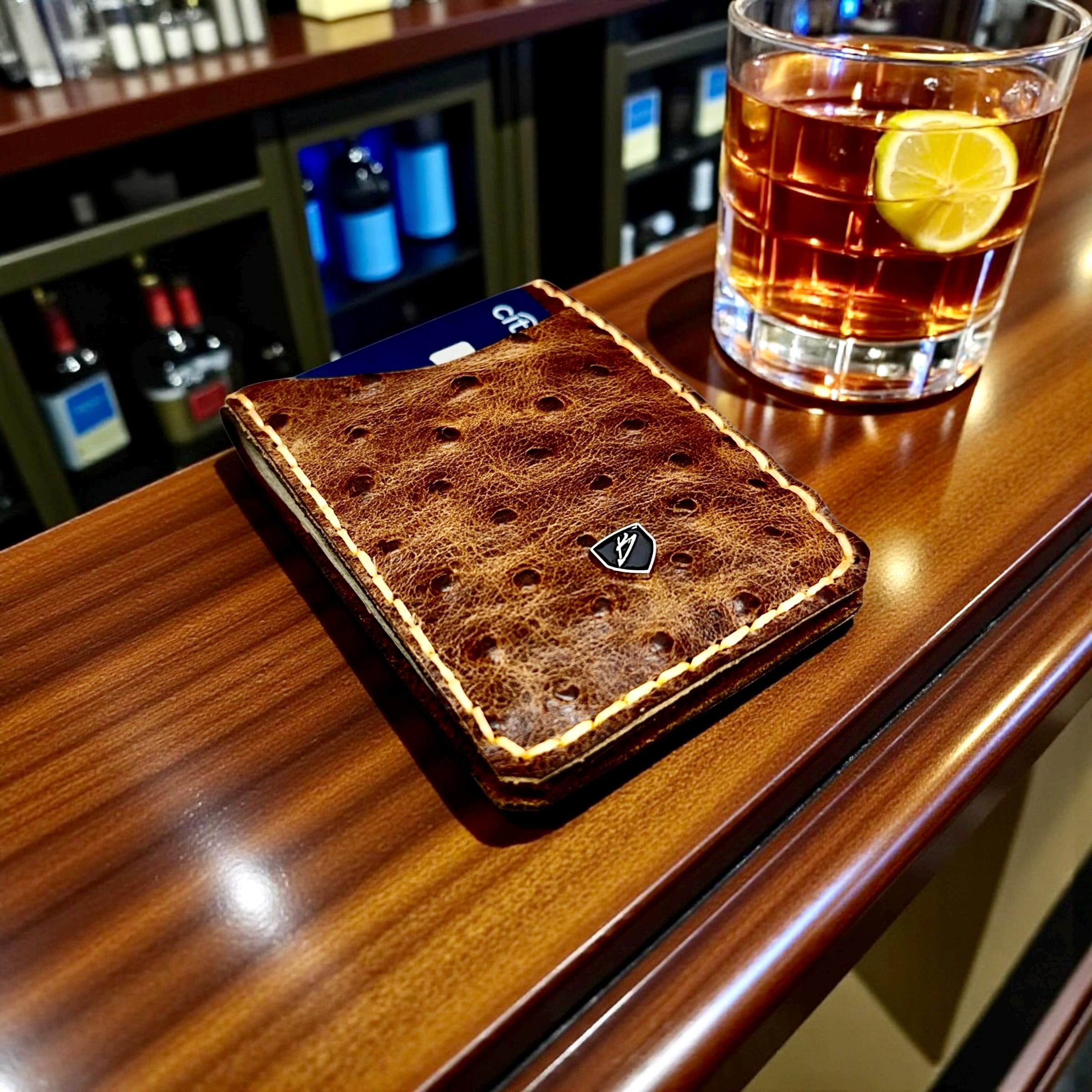Each Bench Built wallet is handcrafted in the USA using premium Embossed Ostrich leather, selected for its refined texture, durability, and smooth, broken-in feel right out of the box. The embossed finish delivers the distinctive look of ostrich while offering consistency, strength, and long-term wear — aging gracefully with everyday use.