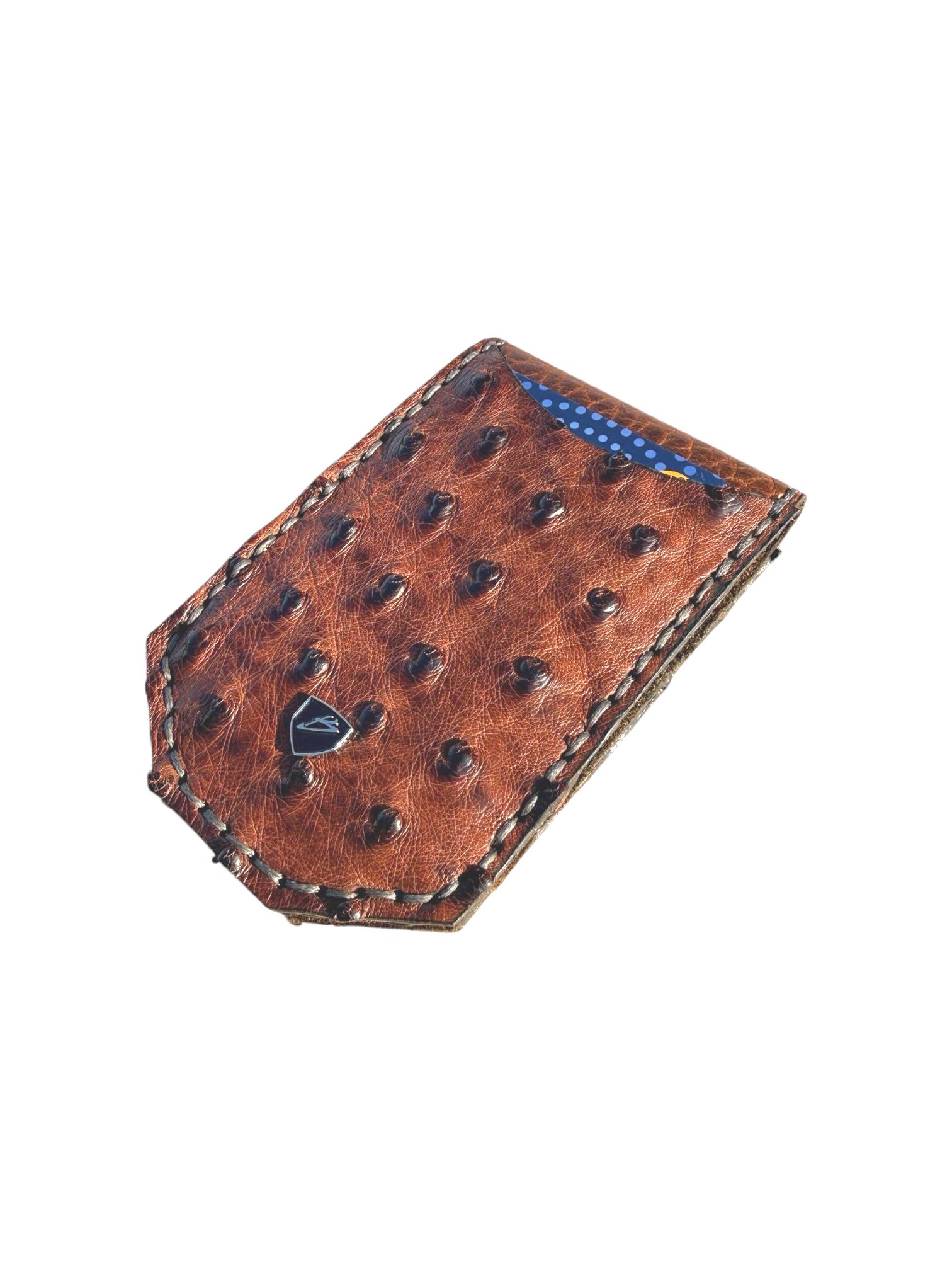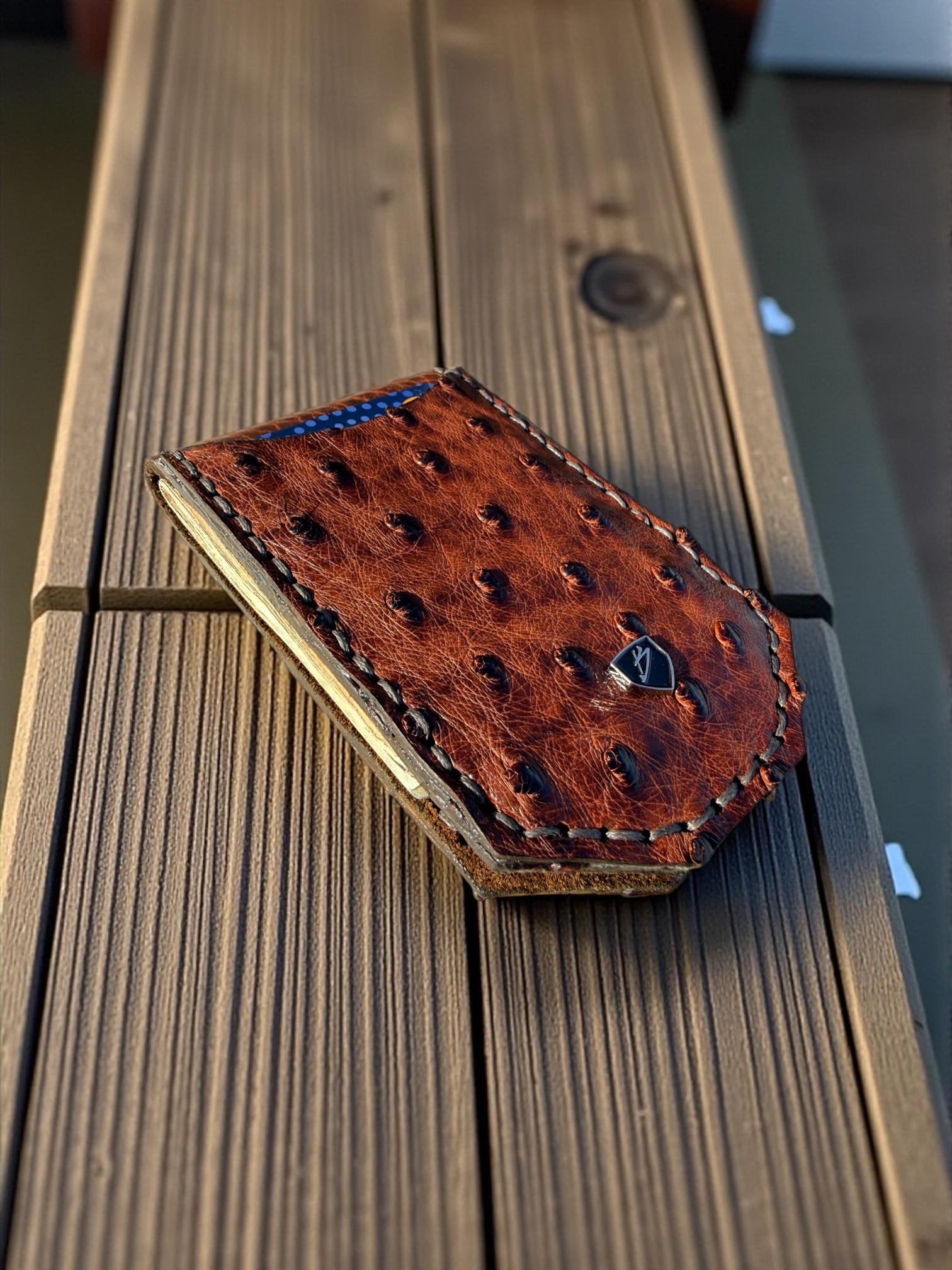 Keywords: Ostrich wallet, premium leather wallet, exotic leather wallet, minimalist wallet, front pocket wallet, money clip wallet, genuine leather wallet, black leather wallet, engraved wallet, handcrafted wallet