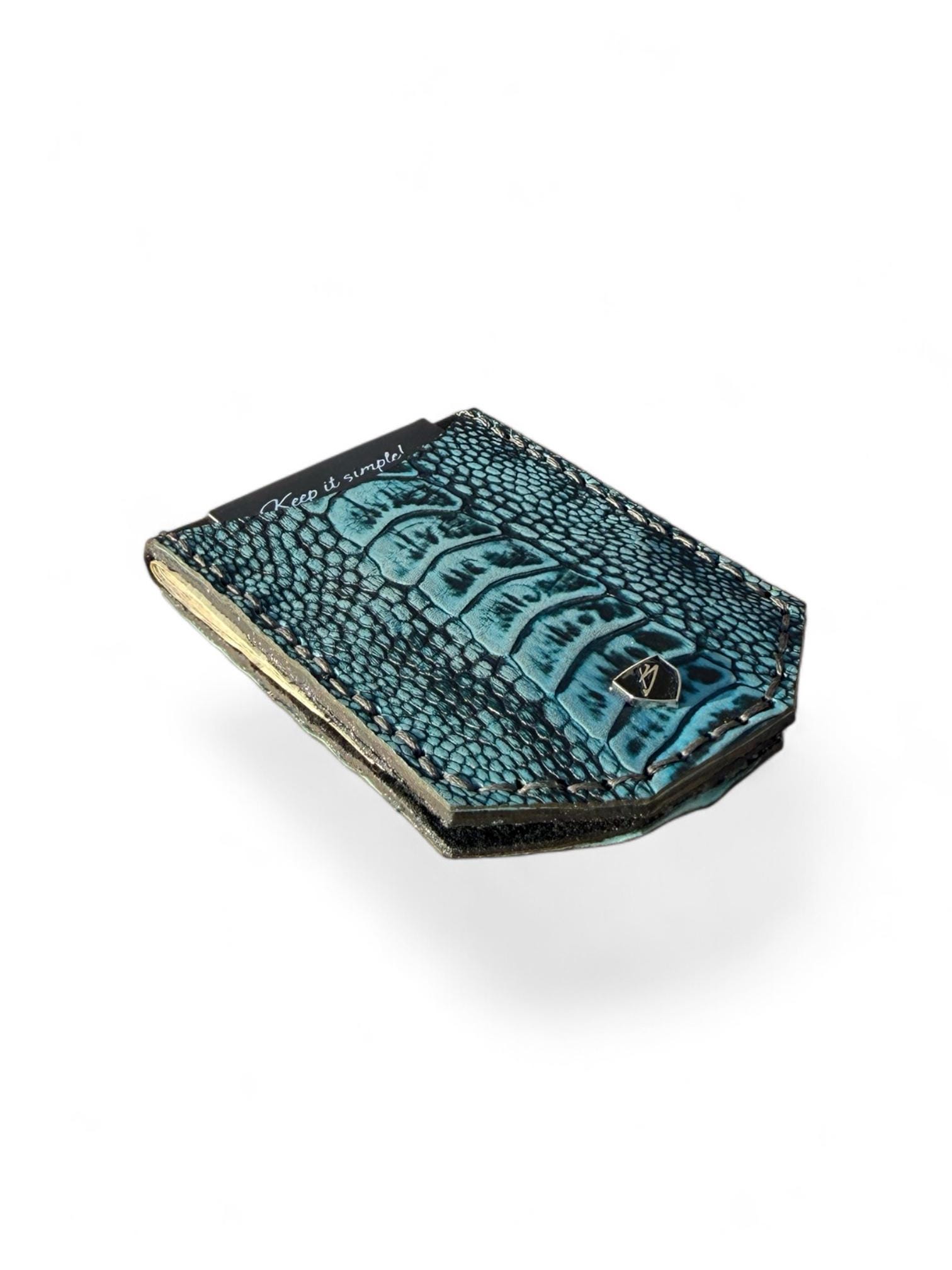Keywords: Turquoise ostrich wallet, premium leather wallet, exotic leather wallet, minimalist wallet, front pocket wallet, money clip wallet, genuine leather wallet, handcrafted wallet, unique gift for him, luxury leather wallet
