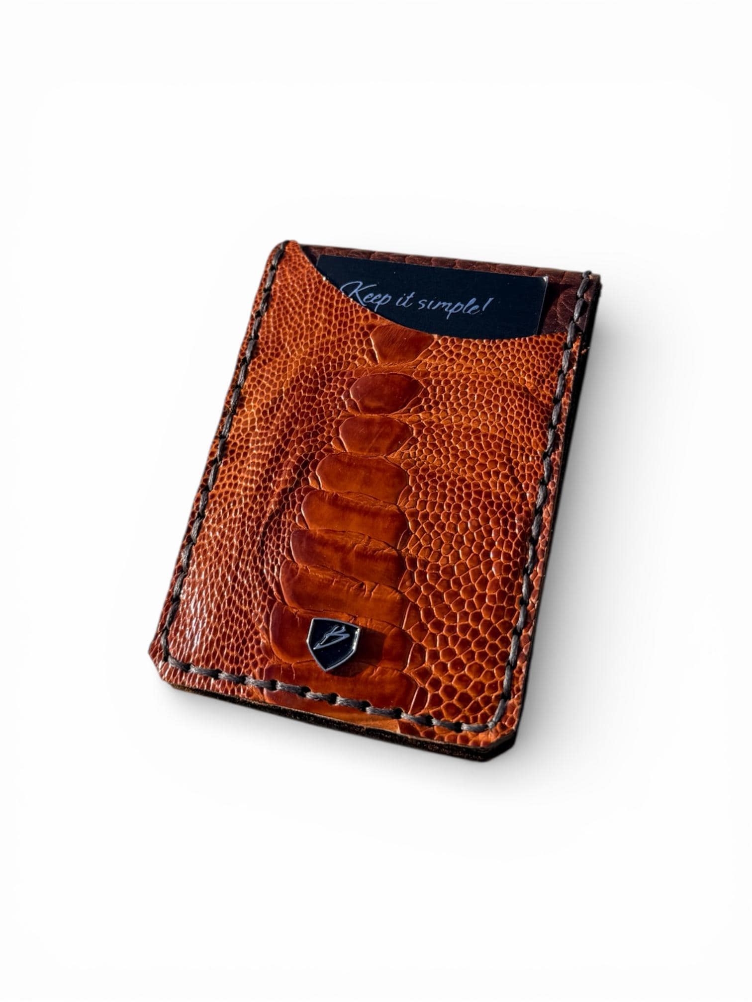 Keywords: Cognac ostrich wallet, premium leather wallet, exotic leather wallet, minimalist wallet, front pocket wallet, money clip wallet, genuine leather wallet, handcrafted wallet, unique gift for him, luxury leather wallet
