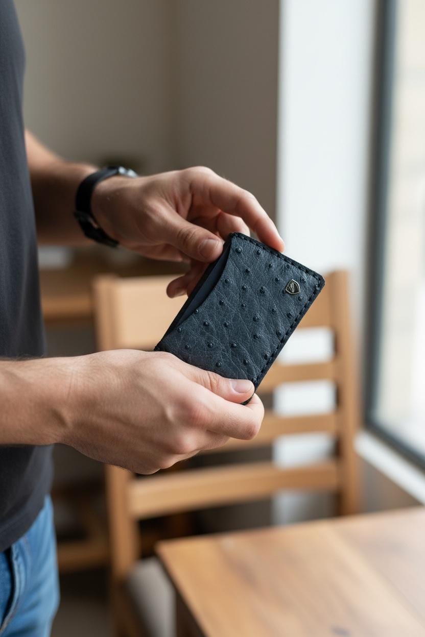 Because ostrich leather varies naturally, no two wallets are ever exactly the same. Each piece develops deeper character over time, making it uniquely yours.