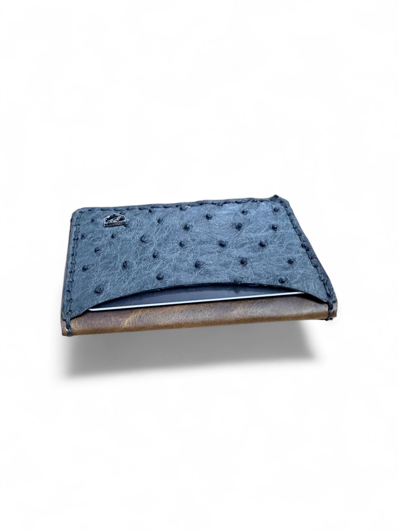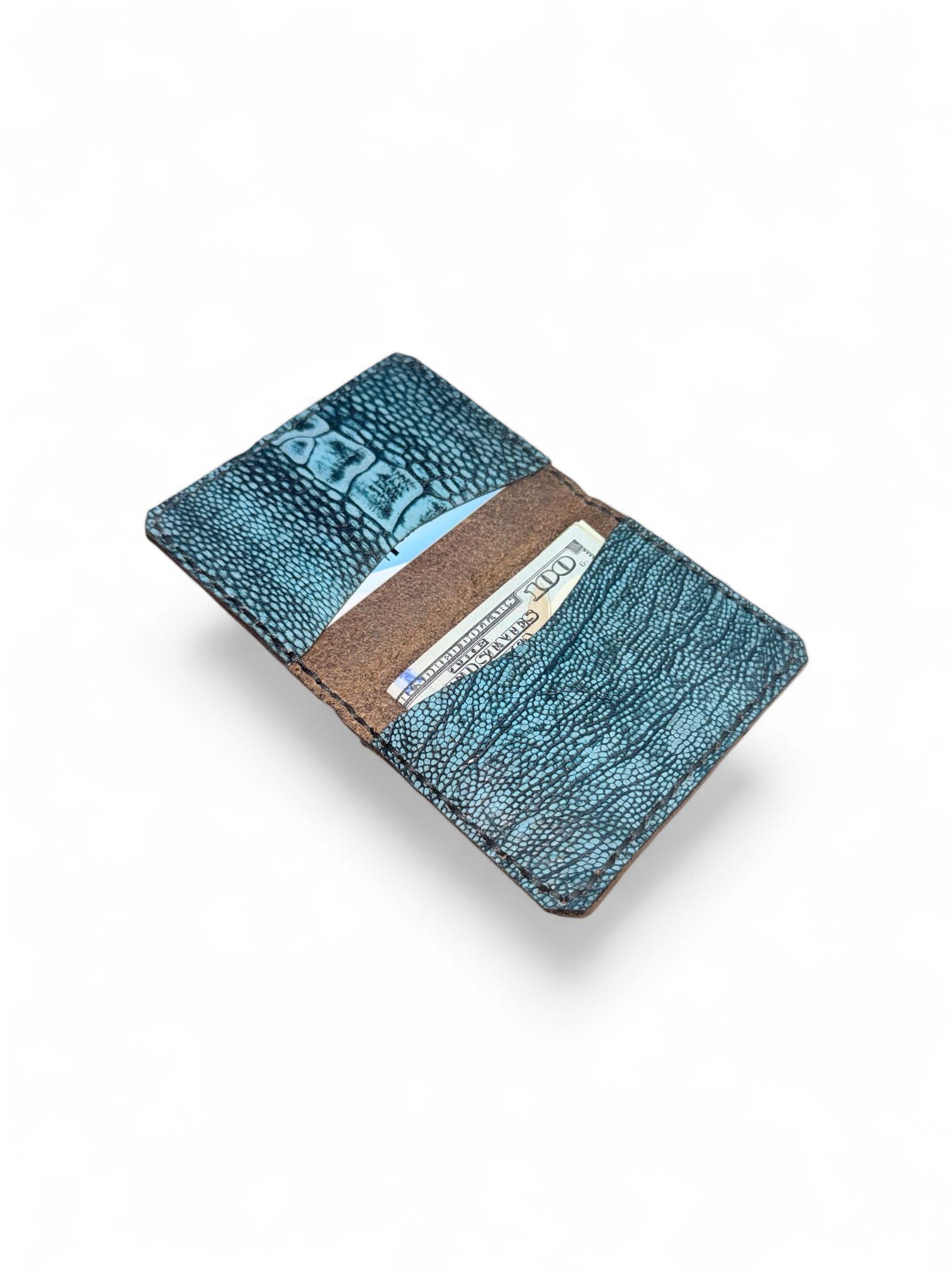 ostrich leather wallet, black ostrich wallet, exotic leather wallet, teal leather wallet, handmade wallet, luxury bifold wallet, USA made wallet, men’s exotic wallet, slim bifold wallet, minimalist leather wallet, handcrafted wallet, premium leather gift, exotic leather bifold