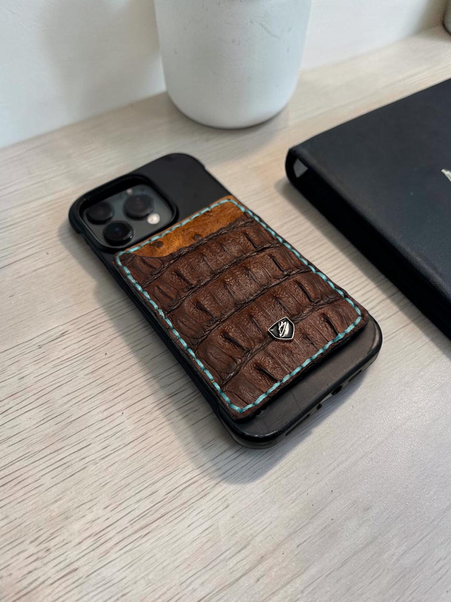 Handcrafted from genuine Nile Crocodile and premium Ostrich leather, this MagSafe wallet offers a rare blend of luxury and utility for your iPhone. Shop this unique exotic piece now.